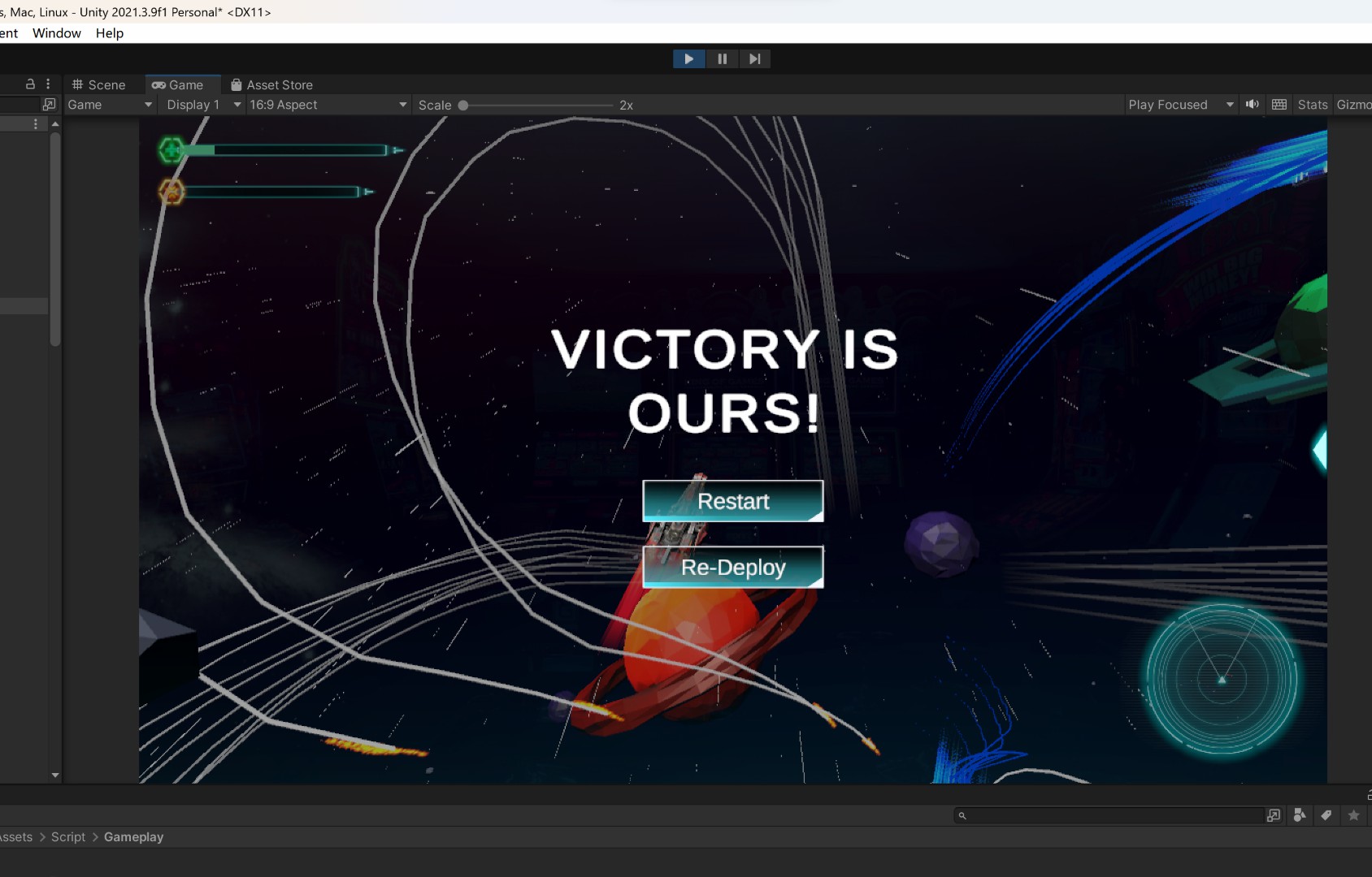 - “Asteroid Wars” is an arcade-style shooter game set in a chaotic solar system. Players aim to destroy the enemy’s mothership within timed matches, and victory can also be achieved by accumulating the most ship kills.